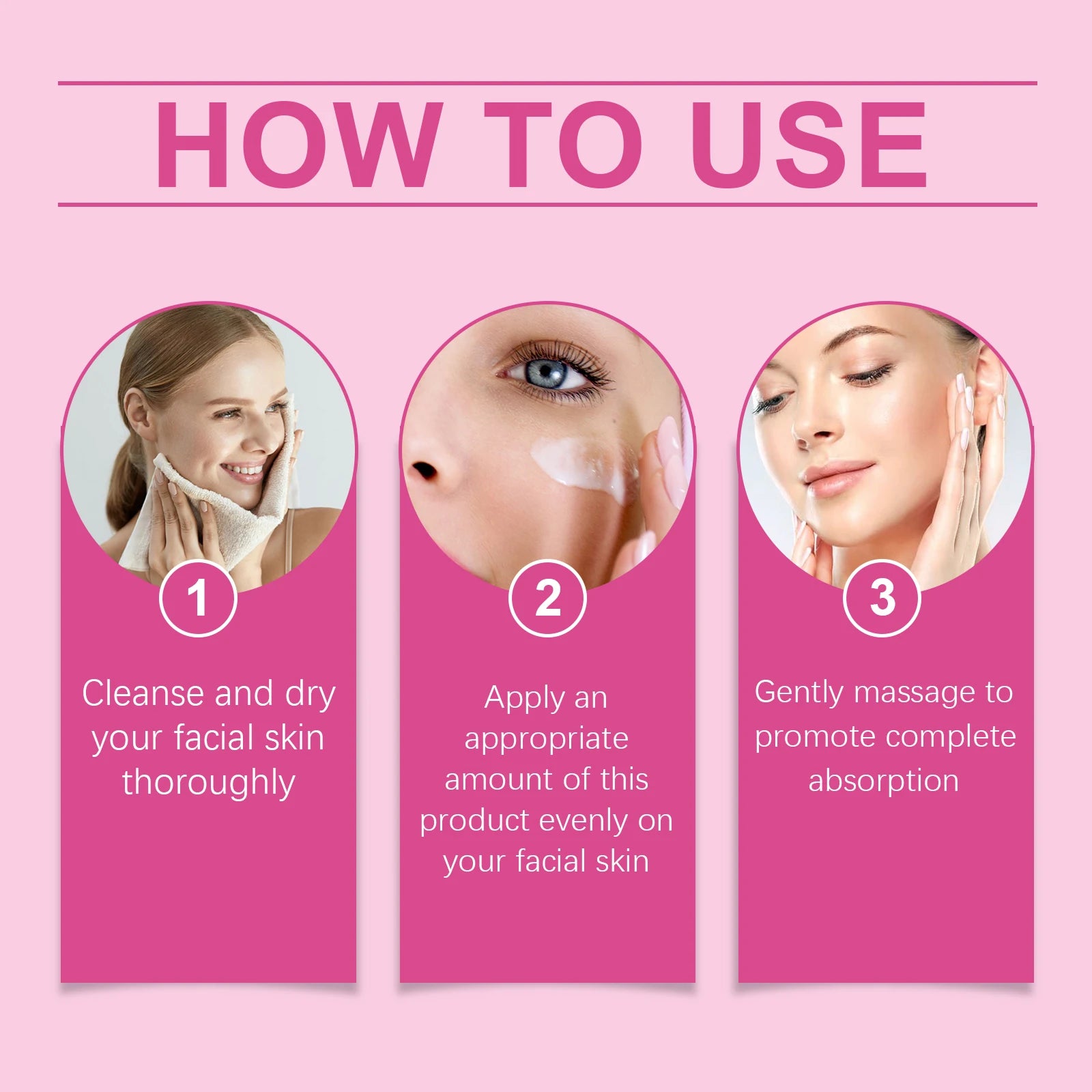 2.Appliquez une quantité appropriée de ce produit uniformément sur la peau de votre visage